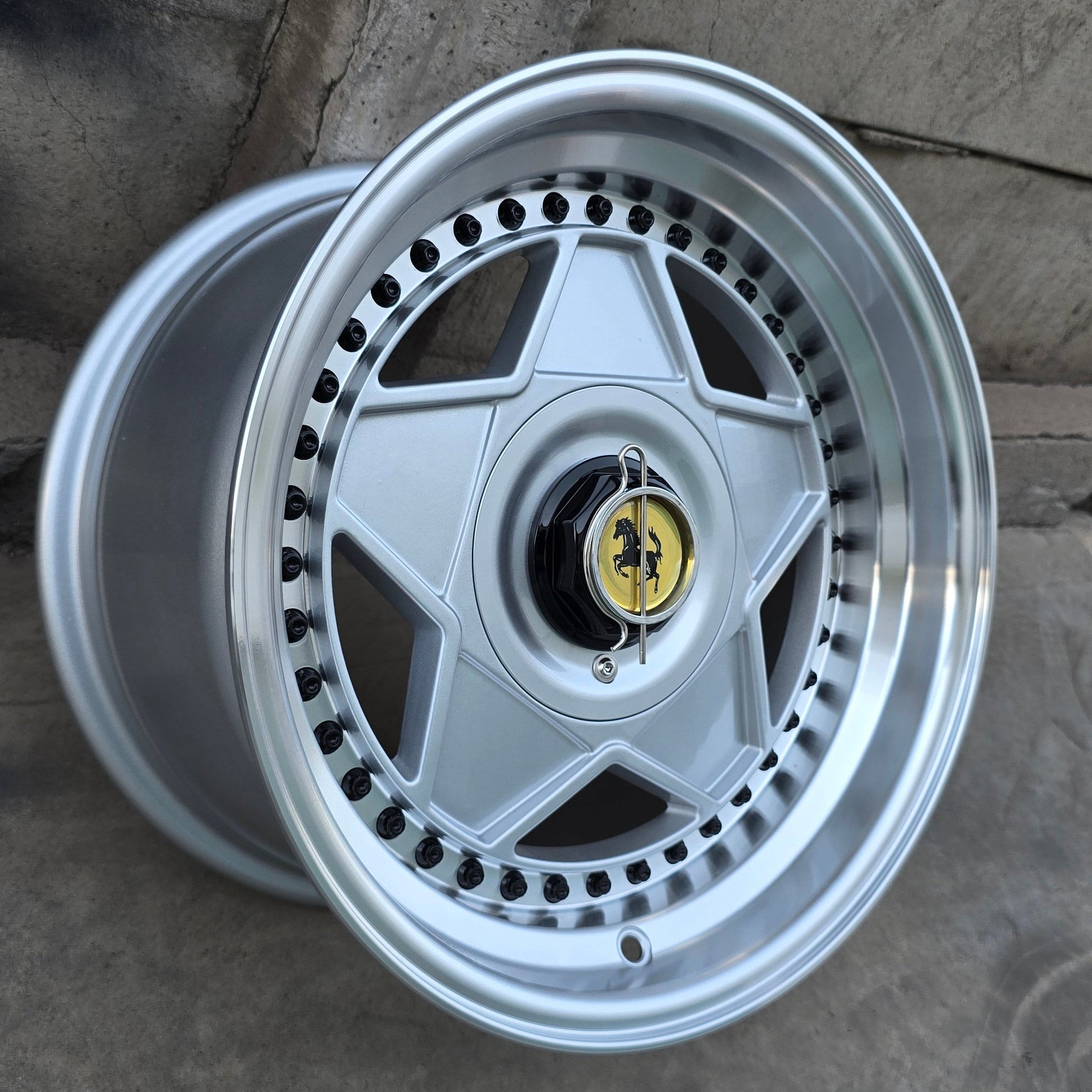 SET DE 4 LLANTAS FERRARI. Aro 15 - 4x100, 4x114. Doble Apernadura. Color Plateado. (5702)