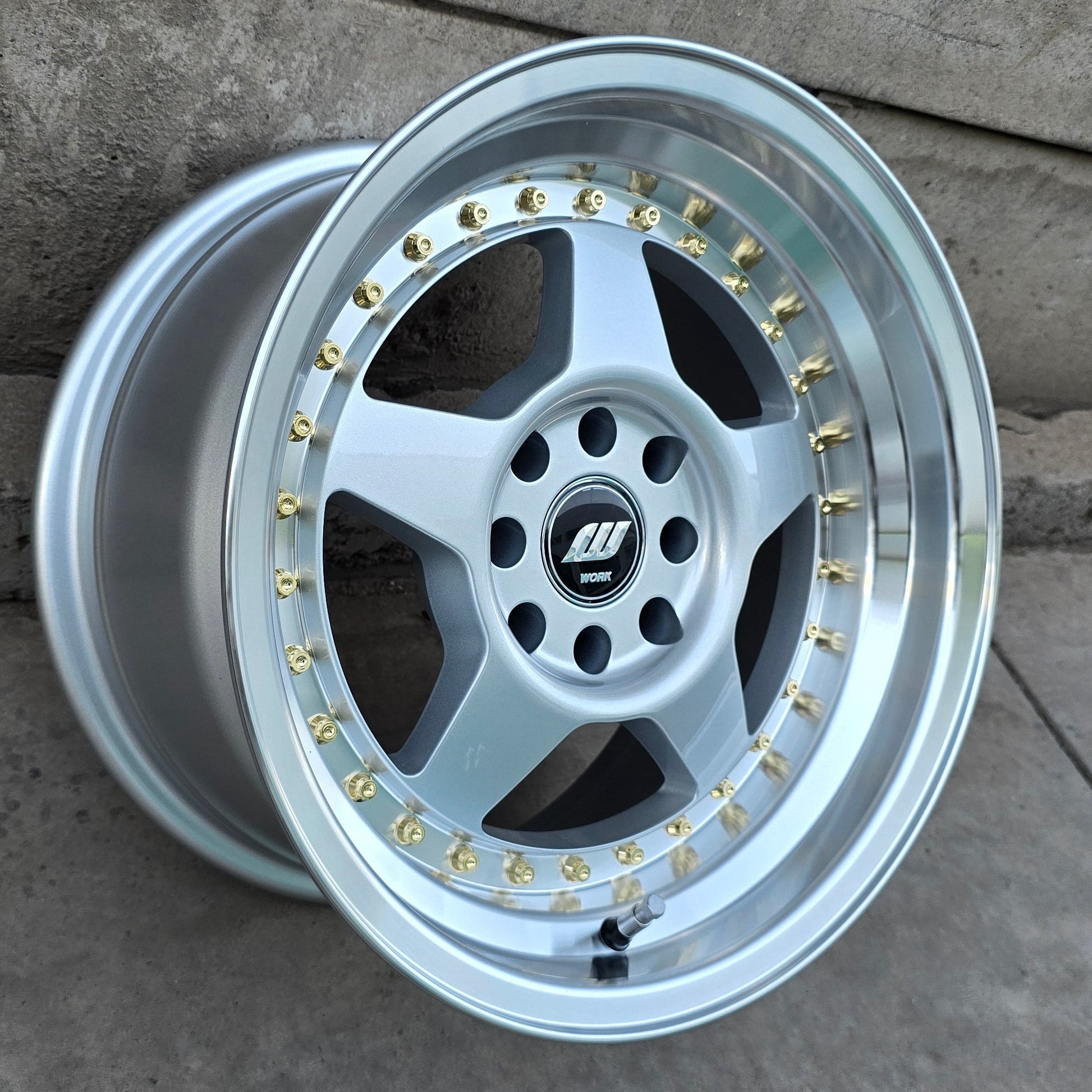 SET DE 4 LLANTAS WORK CR1. Aro 15 - 5x100, 5x108. Doble Apernadura. Color Plateado. (8520)