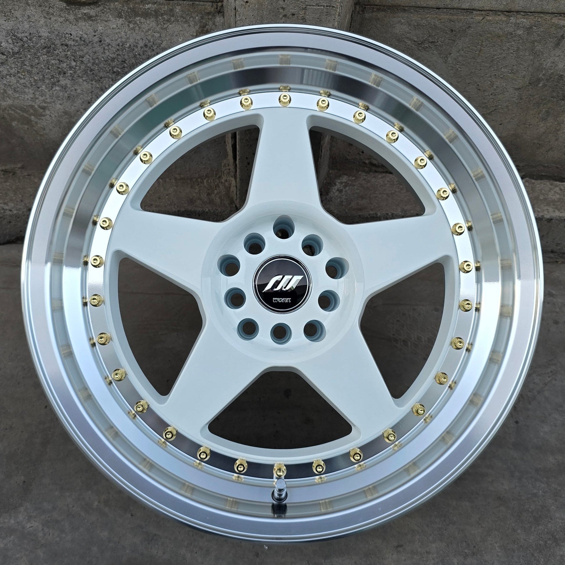 SET DE LLANTAS WORK CR1. Aro 17 - 5x100, 5x114. Doble Apernadura. Color Blanco Aro Cromado. (8520)